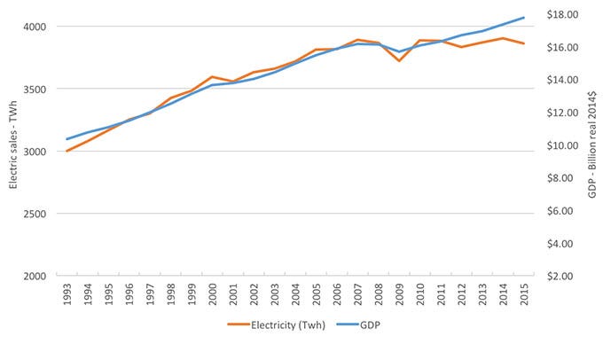 The recent demand growth narrative in electricity has been the decrease in 2008 due to the financial crisis; after a rebound demand again grew at a low rate. Between 2008 and 2019, electricity consumption growth was relatively flat, with an overall average annual growth rate of about 0.3% (EIA Energy).