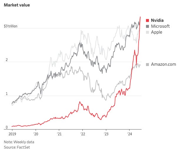 Yesterday the silicon chip platform company Nvidia became the most valuable public company in the US, surpassing Microsoft: