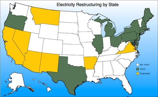 In 2011, roughly fifteen years after the passage of the first state-level electricity regulation restructuring legislation (in states like California, Pennsylvania, Maine, …), retail competition for residential customers remains anemic in most of the 15 states + DC that have implemented restructuring and allow retail choice.